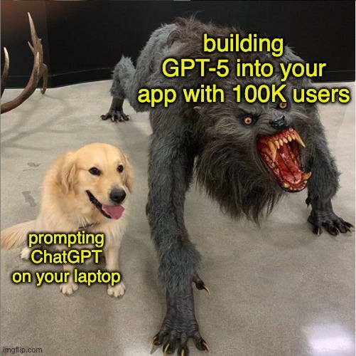 Not only that, but apps with AI models built into them can get incredibly complex. When you build a model into an app, there will typically be multiple interaction points, and thus multiple prompts. Take a look at Notion AI, for example. You can search with it, use it as an AI writing assistant, use it for research, and use it to take meeting notes. To build each of these features, the Notion engineering team needs to build a diverse set of different prompts, each complete with its own set of accompanying context and data. Depending on the app, you might have hundreds of these different prompts.