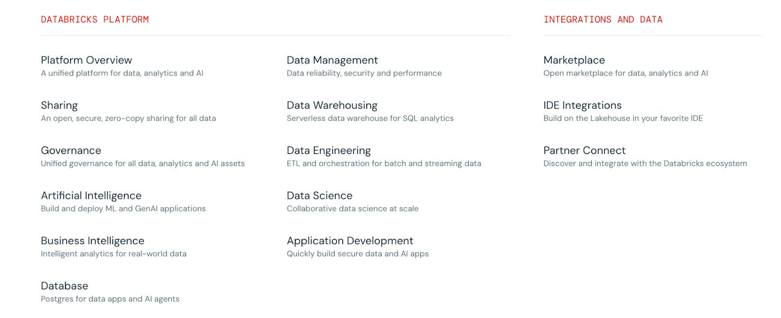 The thing that you have to understand about all of this, before we dive in, is that Databricks has quite literally dozens of SKUs. These are just the high-level categories, each containing several SKUs within: