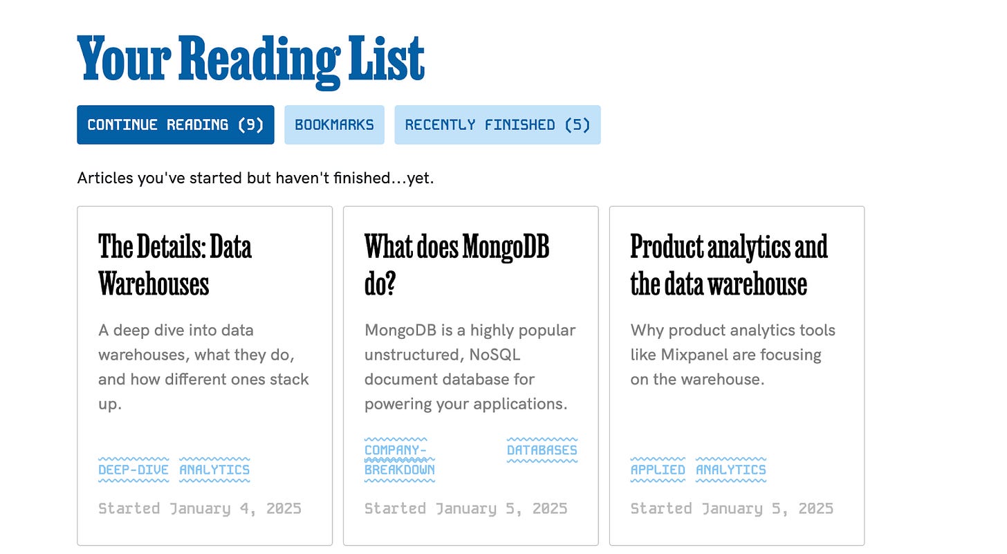 70,000+ professionals use Technically to learn more about APIs, Snowflake, and everything in between. I started this thing as a newsletter 5 years ago, but the newsletter format doesn’t really make sense for how all of you use this thing. I’ve heard from all of you that the 100+ post archive is too hard to navigate. Where do you start? How do you pace yourself, and figure out what’s most important?