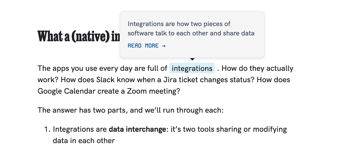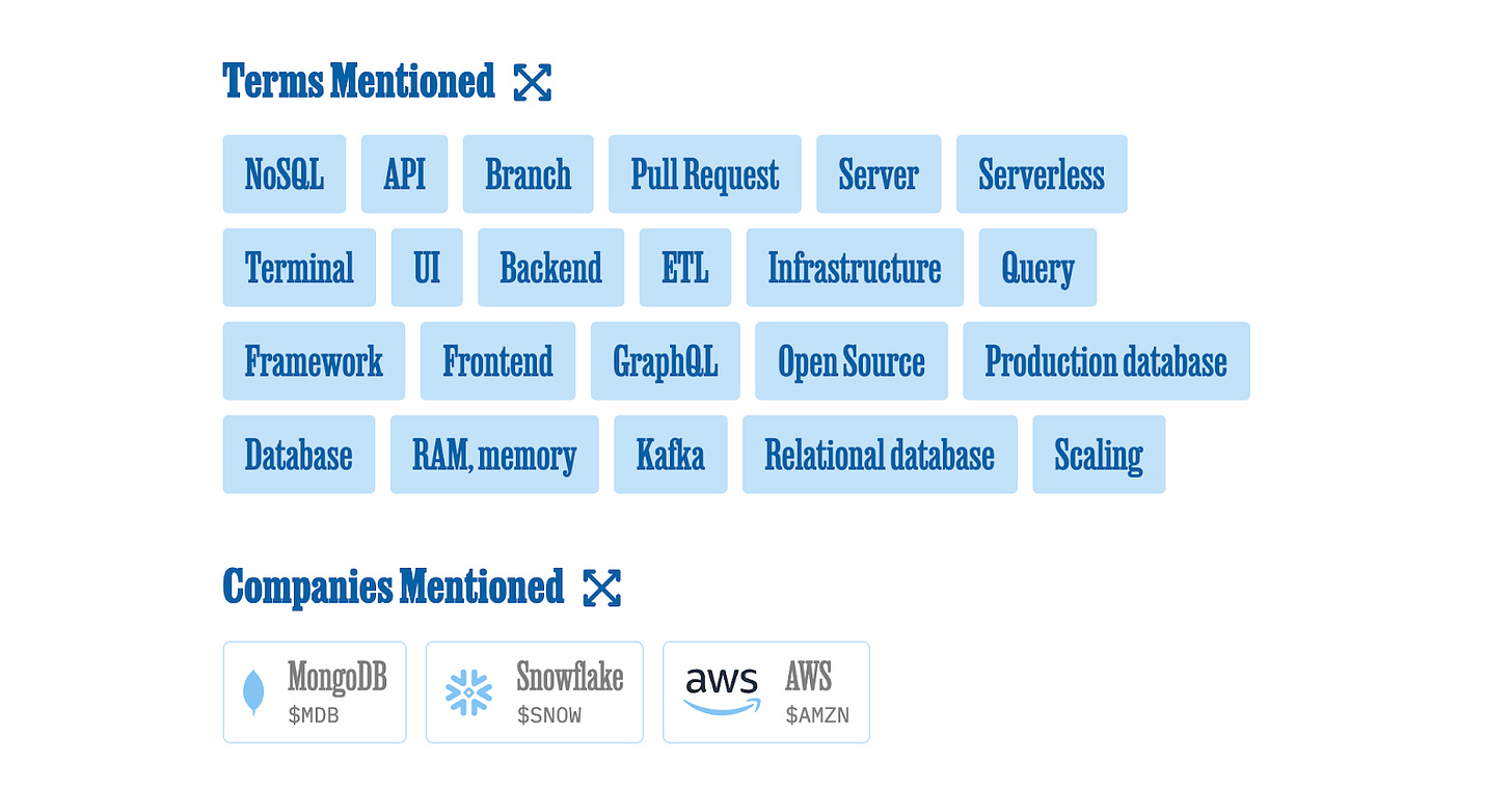 You can see terms mentioned in the post and any companies or tools too. And each of these little cards is expandable, so you can learn about them without needing to leave the page.
