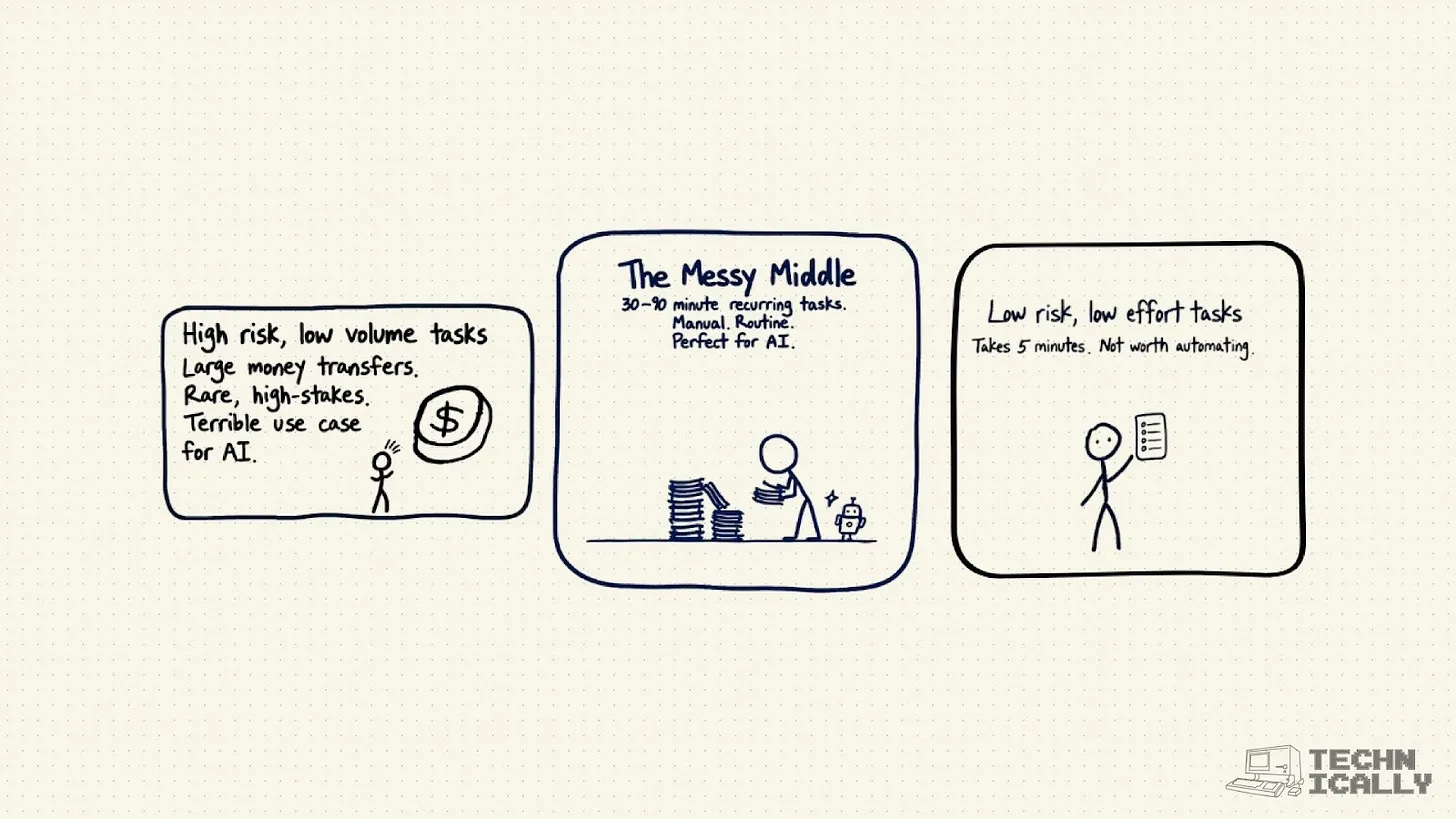 Why the “messy middle” is AI’s sweet spot, with tasks that take 30-90 minutes, happen regularly, and are mind-numbingly manual