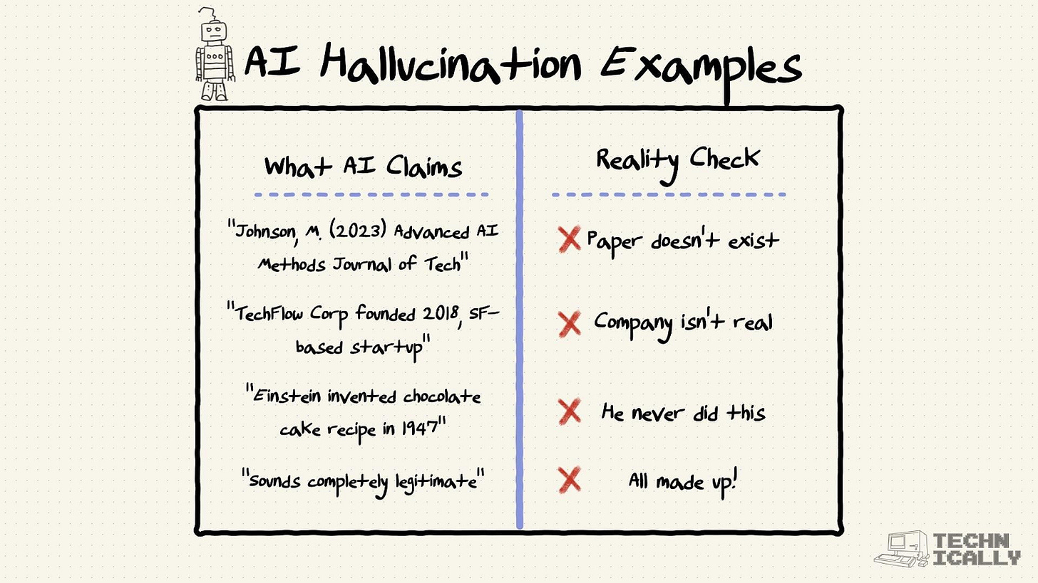 Hallucinations show up as fake citations, invented facts, or plausible-sounding errors