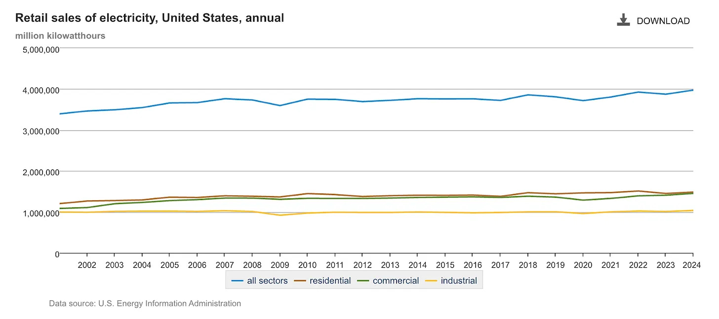 How our grid is woefully underpowered for data center compute, and demand for power has been roughly flat over the past 20 years