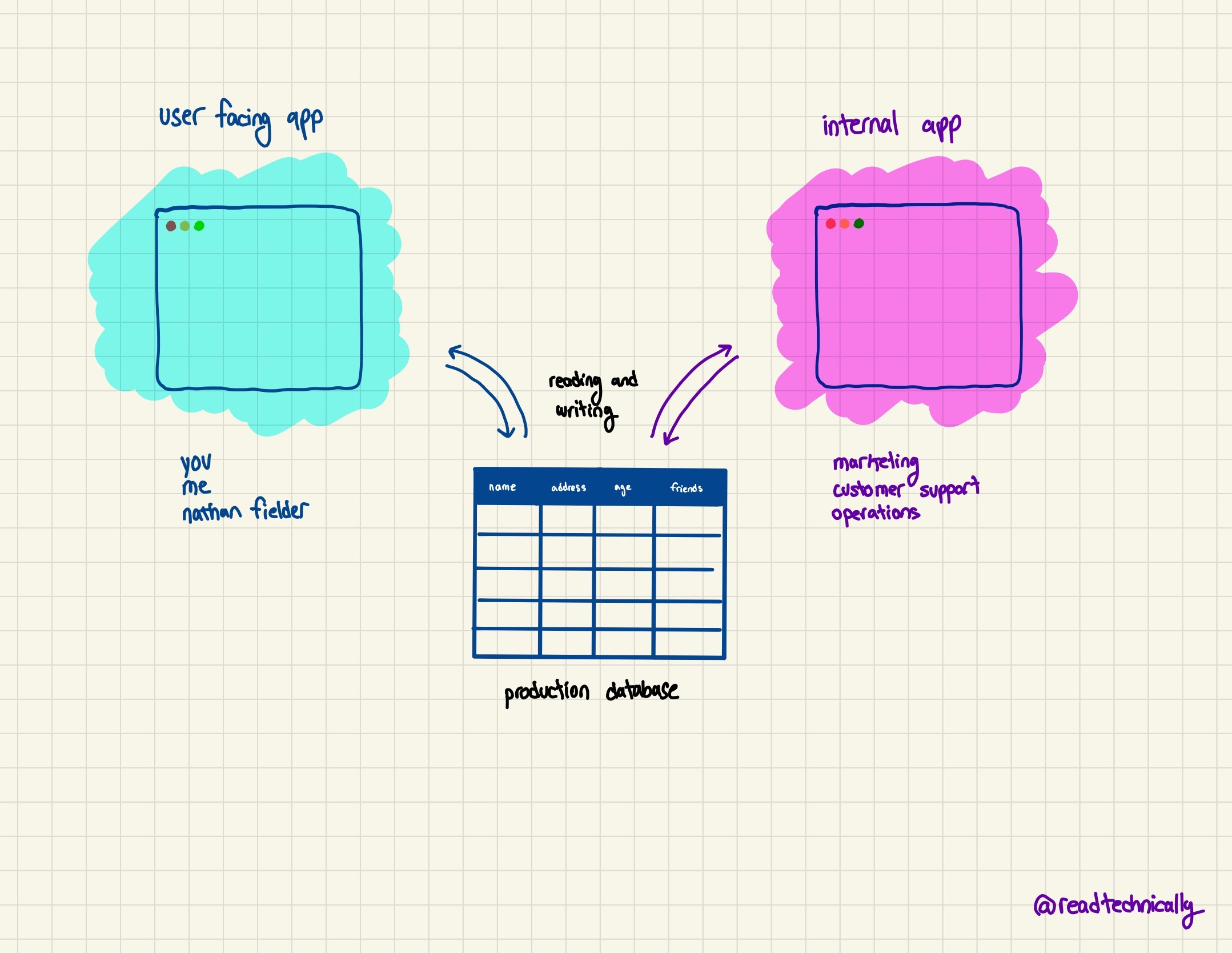 That frontend is what you’re reading this post in right now if you’re on the web, and the backend is storing the content, your profile information, etc. Underneath it all lies a database, probably a relational one, storing and managing all of the data needed to run your app. It probably has a users table, a table that stores payment information, and a table for the canonical unit of your app (a tee shirt listing, a post on Substack, etc.).
