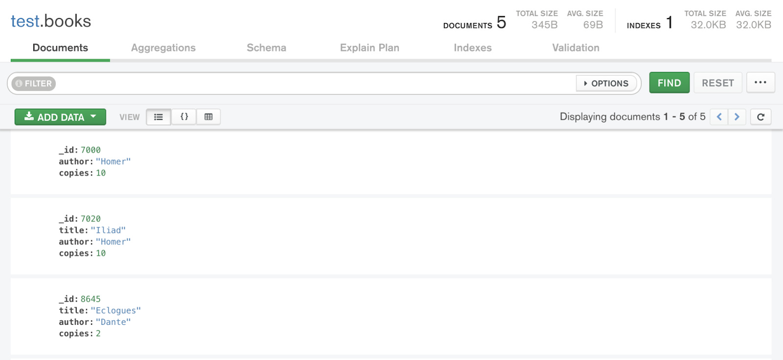 You can click into any of your collections to see your data and write basic queries, too: